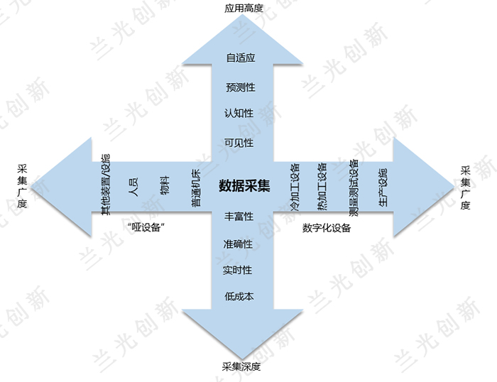 随着物联网等技术的发展,制造数据采集在设备兼容性、数据丰富性、数据价值挖掘等方面都有了快速发展,下面分别从数据的采集广度、采集深度及价值利用等方面进行阐述。如图2所示。