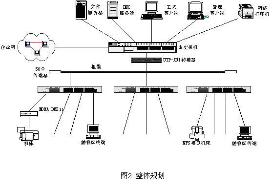 我们数控中心原来的DNC系统因为使用无盘工作站,网线已经布置到了每台机床,其中主干线路是AUI粗缆,中间相近的几台机床通过一台交换机使用屏蔽超五类双绞线联接网络。网络线路目前的运行状态良好,为保护投资节约资金,网络部分不准备改造。