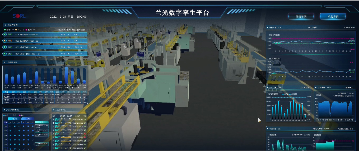 基于兰光设备物联网与兰光MES/MOM等系统,通过实施兰光数字孪生系统,在虚实两个世界实时映射的基础上,实现对物理实体(如生产设备、业务流程等)的优化,最终帮助客户以更高的效率、更低的成本、更优的质量、更人性化的数字体验,构建企业高效、高质、低成本、绿色的生产与管理体系,提升企业竞争力。