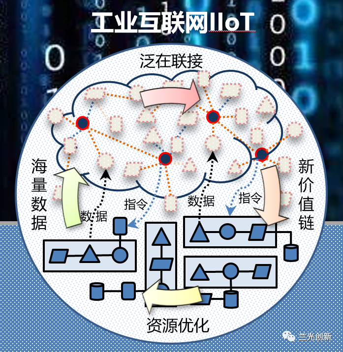 1.超越时空限制,打破原有相对封闭和固化的工业系统格局,以相对离散的形态更广泛、轻灵地联接机器、原材料、控制系统、信息系统、产品、数据以及人的业务活动等工业要素(图4中物理要素有些已经不在原有方框内),优化配置工业资源;