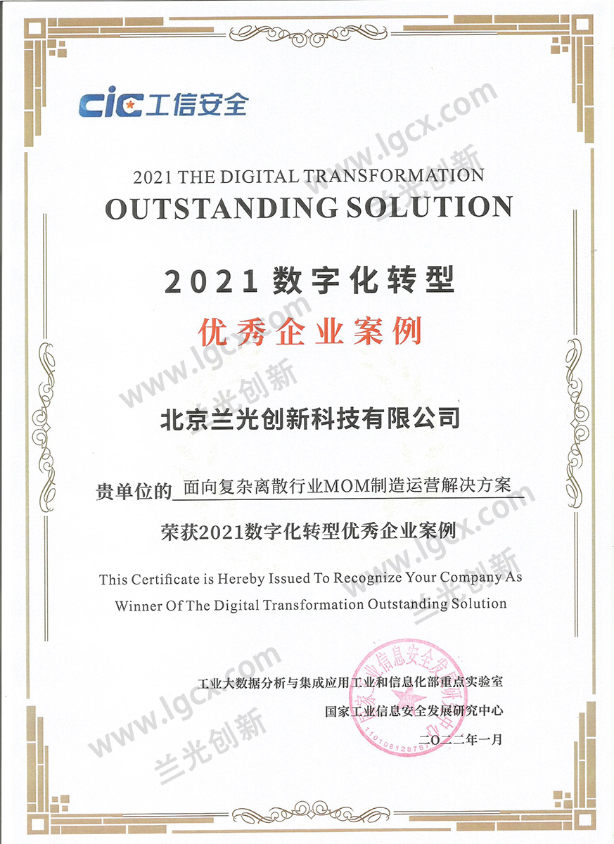 兰光MOM制造运营管理系统成功入选“2021数字化转型优秀企业案例”。
