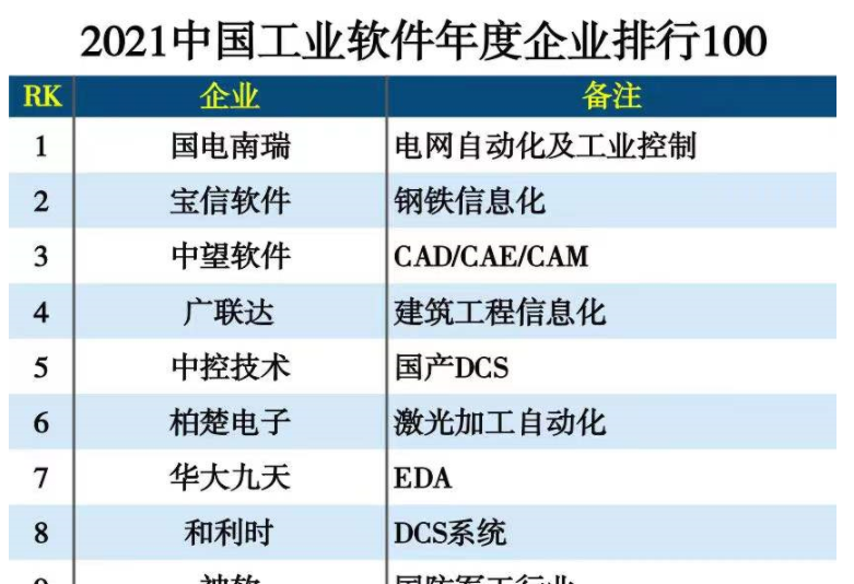 入选“2021中国工业软件年度企业排行100”