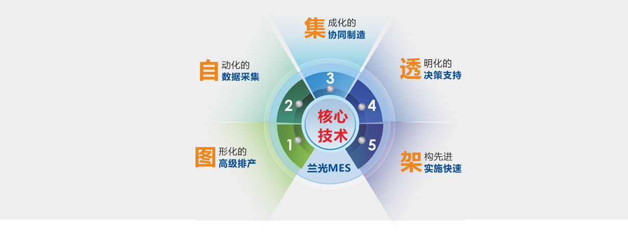 兰光MOM/MES深度体现精益生产的精髓,如:高级排产算法(可精确到每一工序、每一设备、每一分钟)、看板管理、设备运行效率监控、库存管理、过程质量管理、决策支持等,全面涵盖车间生产管理的方方面面,是一套模块化的、集成化的、闭环的、透明的、体现协同制造、适合中国国情的智能化生产运营管理系统,集中体现了将来的发展趋势,即网络化、网络化、智能化与精益化。