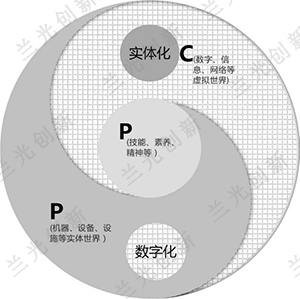 笔者经过深入研究后发现,德、美制订的工业4.0等相关战略的指导思想是“扬长补短”,其核心均可用广义上的CPS理念来表示,是一种典型的二元战略(赛博-物理虚实两世界)。基于信息化强、制造业弱的现状,美国采取的战略是C+P,扬C之长补P之短,其中,C为Cyber赛博虚体,包括数字、信息、网络等虚拟世界,P为Physical物理实体,包括机器、设备、设施等实体世界。而德国恰恰相反,德国是制造业强、信息化弱,因此德国的战略是P+C,扬P之长补C之短。