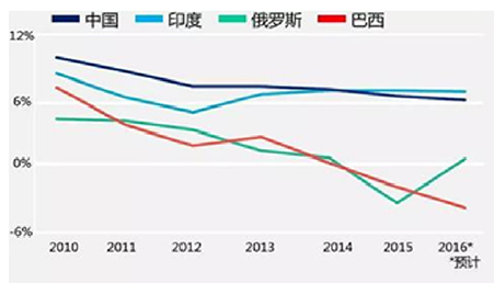 图2 金砖四国GDP增长率(来源:BMI的研究数据)
