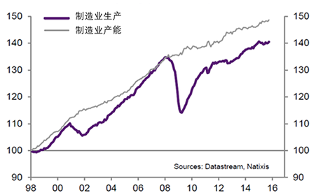 图5 制造业实际生产与产能的对比图 (来源:Datastream,Natixis)