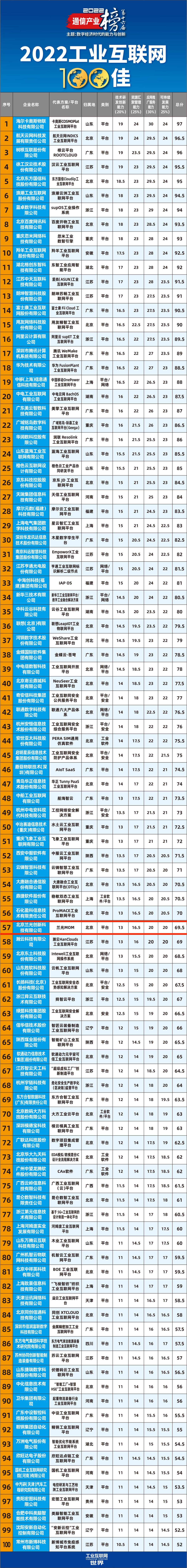 作为工业互联网领域权威性、持续性的第三方产业评价体系和通信产业榜的重要组成部分,2022工业互联网100佳榜单深受业界关注。今年榜单调研以“数字经济时代的能力与创新”为主题,契合数字经济时代赋予工业互联网角色和使命,反映工业互联网市场主体的实践与能力。